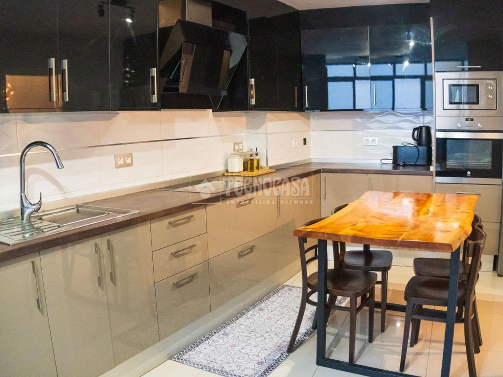 Al entrar, un elegante recibidor nos da la bienvenida y, a su vez, distribuye armoniosamente las estancias del hogar. A la derecha, encontramos un espacioso y luminoso salón ideal para disfrutar en familia. Al frente, una amplia y moderna cocina completamente equipada, perfecta para los amantes de la gastronomía.