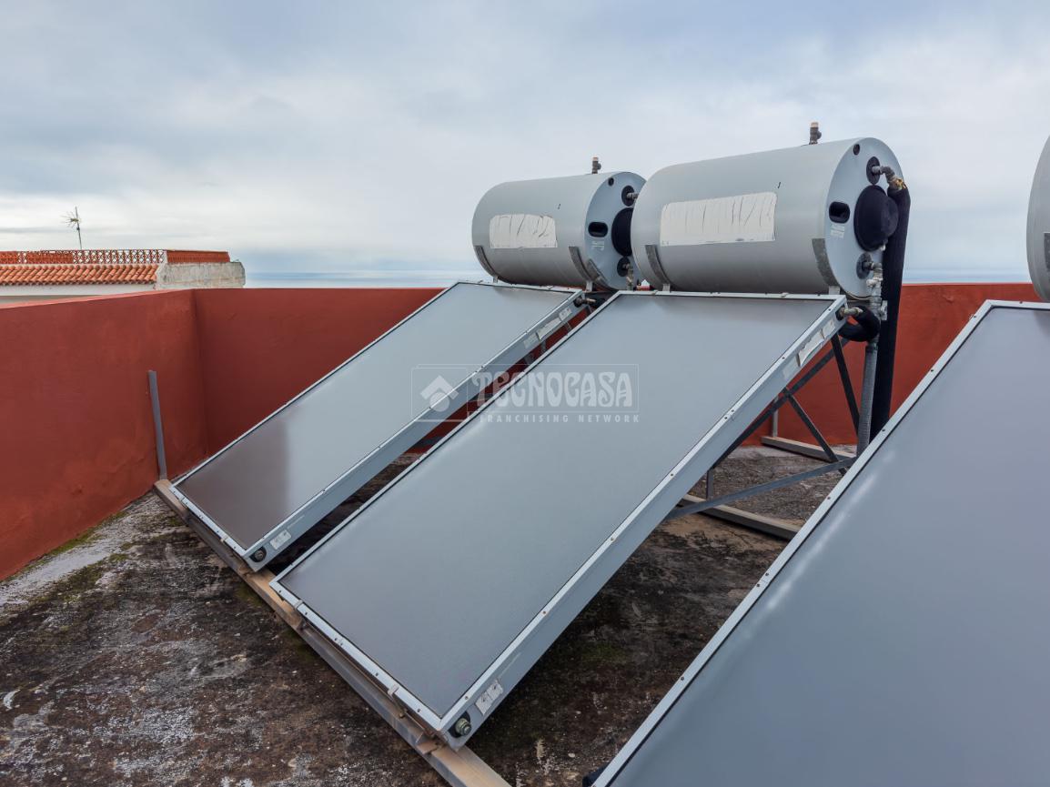 El inmueble se completa con plaza de garaje, ascensor y, en la parte alta del edificio, una zona de azotea destinada al tendido de ropa, junto con una placa solar propia que aporta eficiencia y ahorro energético.